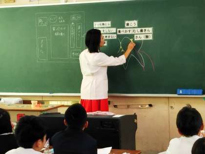 今日は、歯科衛生士さんが来られて、4年生が「フッ化物」塗布をおこないました。