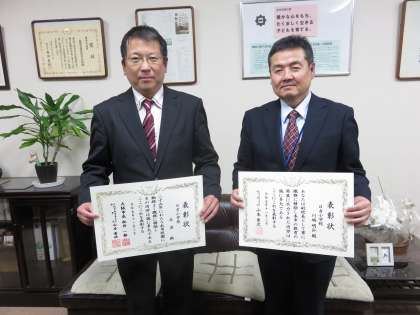 その際、本校の副校長先生が“教育功労賞”を、教頭先生が“勤続25年表彰”を受賞されました。