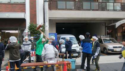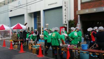 今日は日吉連合のもちつきです。