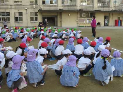1年生と園児がペアになって、まず名前を覚えました。それだけでもとっても仲良くなった感じがしました。