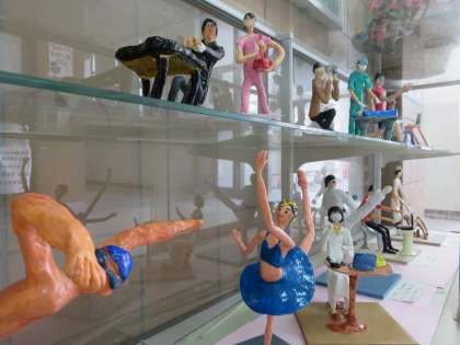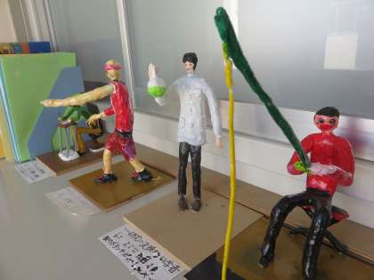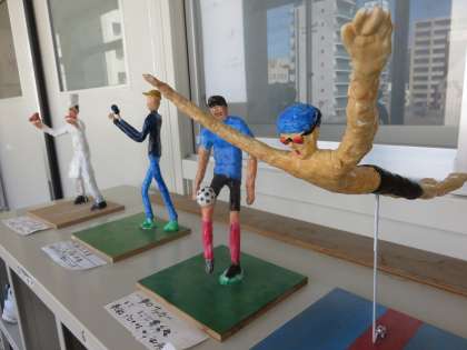 6年生が、将来やってみたい仕事や夢に思っていることを紙粘土で作品にしていました。