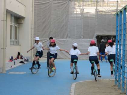 パフォーマンスクラブは、一輪車や竹馬、ダブルダッチなど今まで練習してきた成果をビデオに撮っていました。