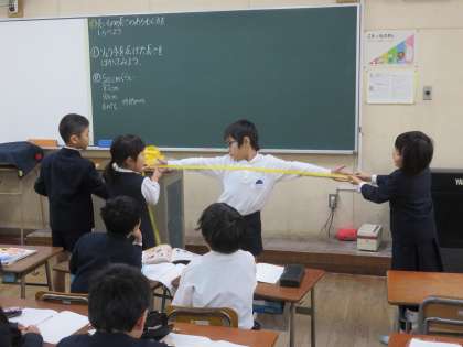 自分の両手を広げたら1m以上あることに、ちょっと驚いていた2年生でした。