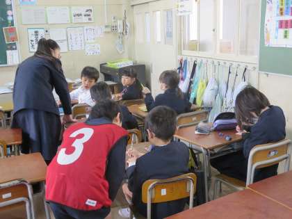 5年生の子どもたちが中心となり、低学年の子らに分かりやすく説明している姿は、とても頼もしく感じました。