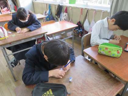 今日は、朝の活動の時間にベストフレンド班で集まり、6年生に贈る寄せ書きのメッセージを書きました。