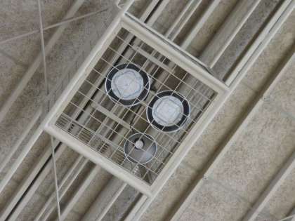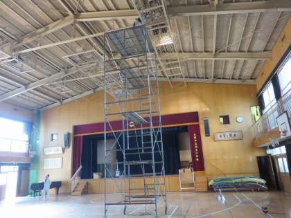 今日は講堂の照明を付け替えました。