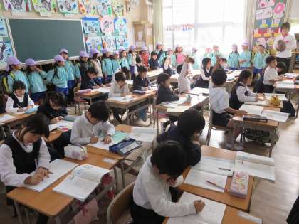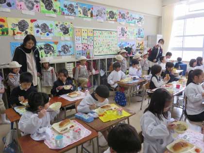 4時間目の授業を参観したり、給食の様子を見学したりしました。