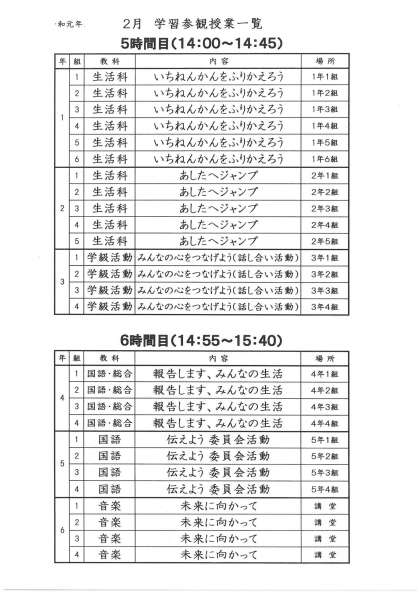 学習参観 … 14:00〜14:45(5時間目)