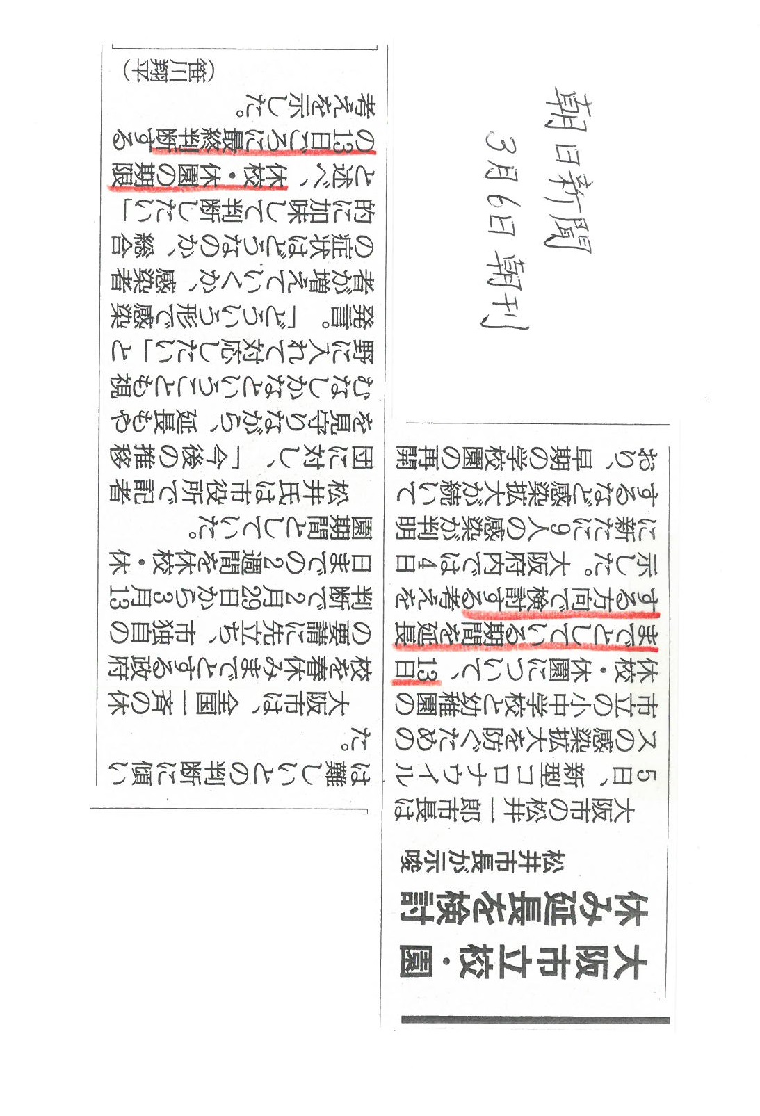 朝日新聞3月6日朝刊