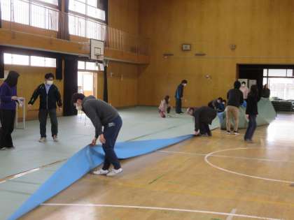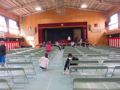 臨時休業が延長したので、来週に予定していた“卒業式の会場準備”を行いました。