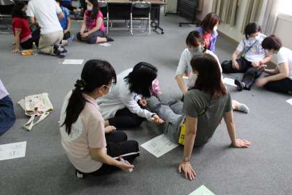 来週から給食が始まることに備えて、エピペン研修を行いました。実際にアナフィラキシーが起こった時の対応を研修用DVDで確認し、そのあと練習用のエピペンを使って実習しました。