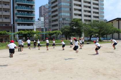 間隔をあけて、みんなで縄跳びをしました。久しぶりの運動だったので、楽しそうに活動していました。