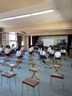4〜6年生の音楽専科の授業がスタートしました。まだ、大声で歌ったり、リコーダーを演奏したりは控えています。