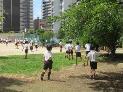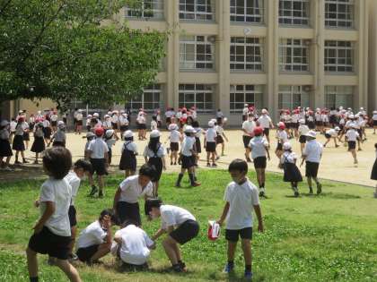 20分休みの運動場は、子どもたちが元気に遊ぶ姿でいっぱいでした。