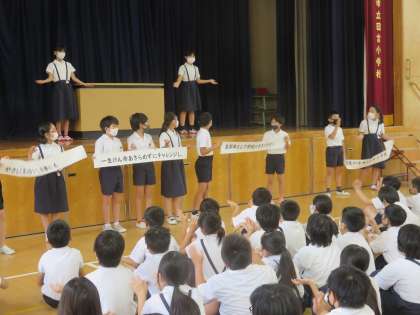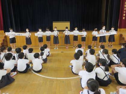 このような集会を通して、少しずつ学年としてまとまり、高学年としての自覚が身についていってくれたらいいな・・と思いました。