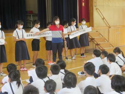 まずは学年目標を発表しました。ふり付けもつけてみんなで覚えるようにしました。