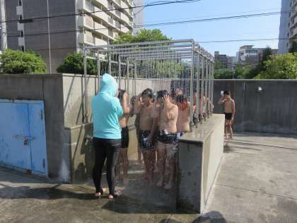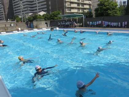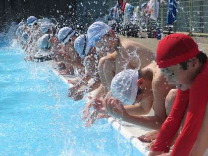 2学期に入り、1学期にできなかったプール水泳を5・6年生に限って行うことにしました。