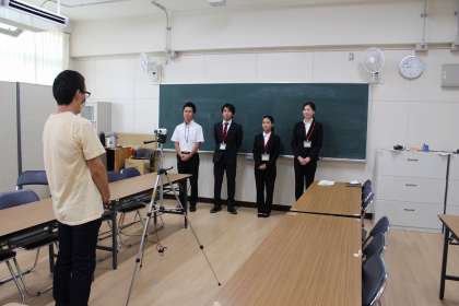 職員室で職員に紹介したあとに、子どもたちへの紹介のためにビデオ撮影を行いました。