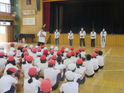 講堂では、テコンドーを教えてもらっていました。