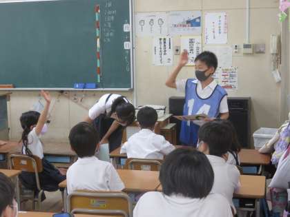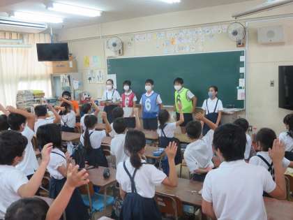 毎週木曜日は、全校集会です。今週も講堂には集まらず各教室で行いました。