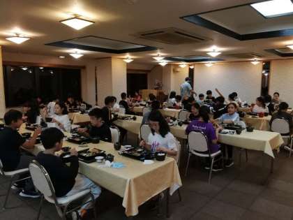 避難訓練のあとは、お待ちかねの晩ごはんです。
