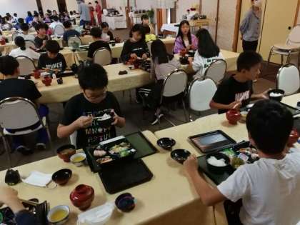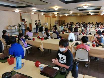 朝の集いが終わると、そのまま食事の場所に移動しました。