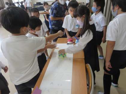 2年生の子どもたちが、1年生を招待して、自分たちで手作りした“おもちゃ”を通して交流する『おもちゃまつり』が昨日と今日で行われました。