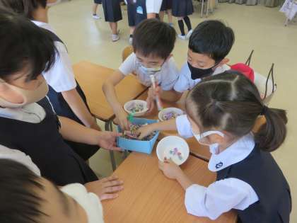 教える2年生も教えてもらう1年生も、とってもうれしそうでした。