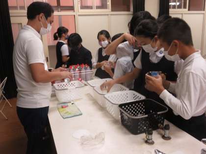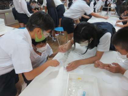 まずは、自分たちで、実験道具を集めてきました。(全部そろえられたグループはいませんでした。自分たちで考えて道具をそろえるのも、難しいですね!)