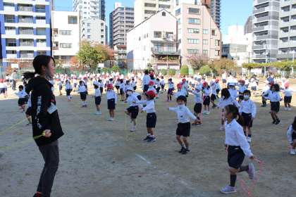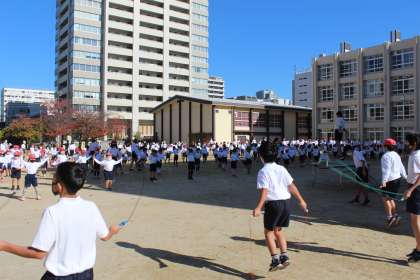 11月24日(火)から12月4日(金)まで、子どもたちの体力向上をなわとび週間をします。20分休みに、2学年が一緒になわとびを練習します。ペアは1年と6年、2年と4年、3年と5年です。