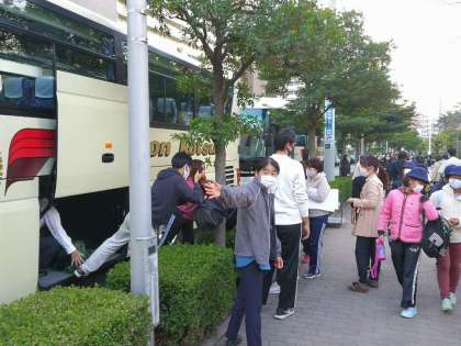 朝の健康観察に少し時間がかかりましたが、みんな乗り込んで出発しました。