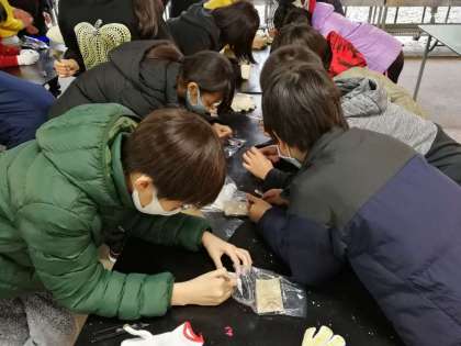 宿舎に戻った後は、勾玉作りをすることにしました。