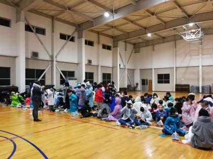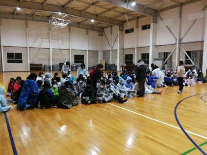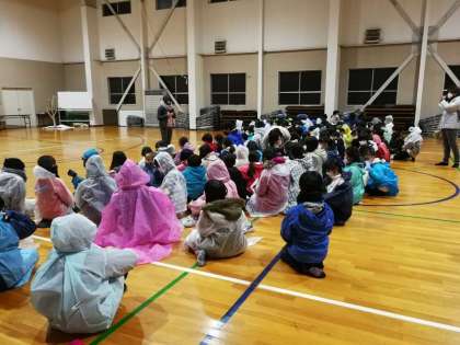 寒いし雨が降るかもしれないので、全員レインコートを着ました。