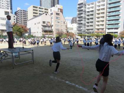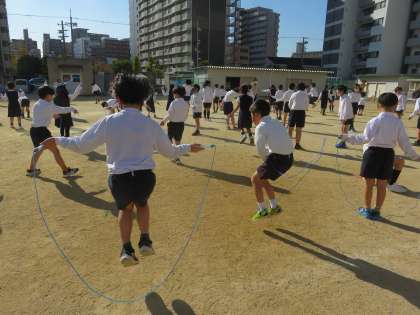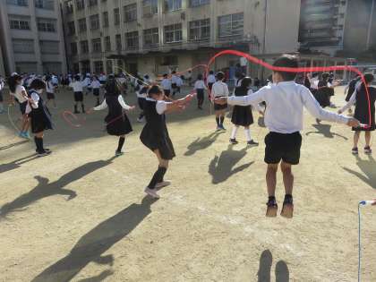 ひたすら跳び続ける子もいれば、新しい技に挑戦している子もいます。