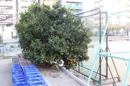 日吉小学校の学習園に金柑(キンカン)の木があります。小さいミカンのような実をたくさんつけているので知っている子もたくさんいると思います。