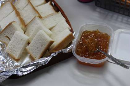 変な質問になりましたが、金柑は「皮ごと」食べる、または「皮だけ」食べる果物です。皮に甘さがあり、実はとても酸っぱい、不思議な果物です。さっそく職員がとれた金柑を使ってジャムを作ってくれました。とてもおいしかったです。
