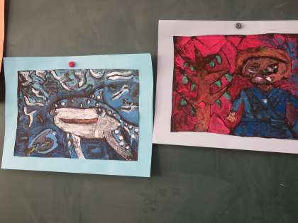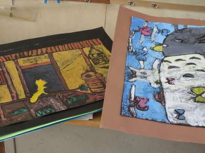 色版画作成中(4年) 2