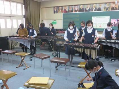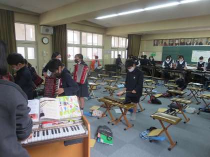 音楽室では、5年生が『ジングルベル』の曲を合奏していました。
