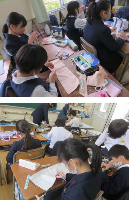 そして、印刷を待っている間は、自分の机で裁縫道具を使って『小物作り』をしていました。