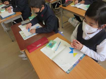 同じ6枚の色板でも、友だちによっていろいろな形ができ上がっていましたね!