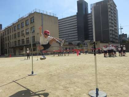 すべてのタイミングが合わないと、うまく跳べないので、自分の目標にする高さに棒を合わせて、何回も何回も練習していました。