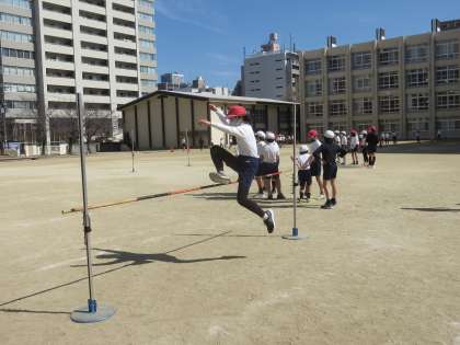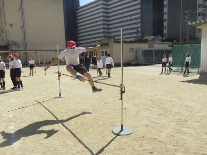 サッカーの隣りでは、『走り高跳び』の練習をしていました。
