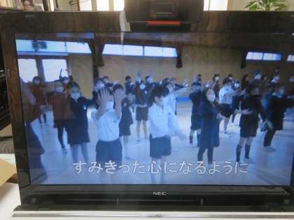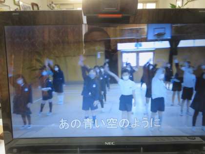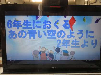 2年生は、『あの青い空のように』の歌を、6年生に向けたメッセージを入れて歌いました。