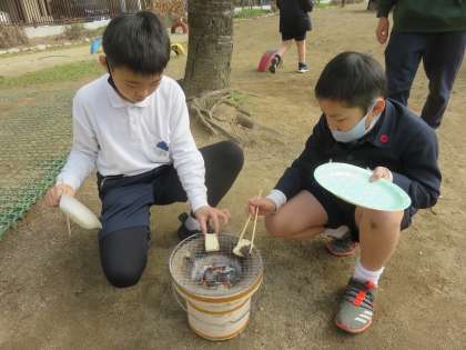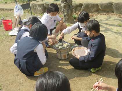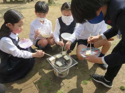 こげないようにおはしで何回もひっくり返しながら、ふくらむのを待っていました。