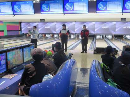 まず、ボーリングの歴史やマナー、ピンまでの長さやボールの重さなど、いろいろなボーリングにまつわる話をお店の方がしてくださいました。