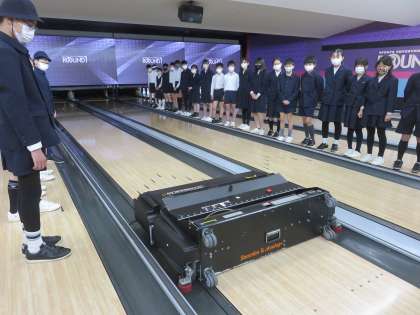 その後、レーンの掃除やワックスがけの様子を見たり、プロボーラーの方が実際に投げている姿を見せてもらったりしました。