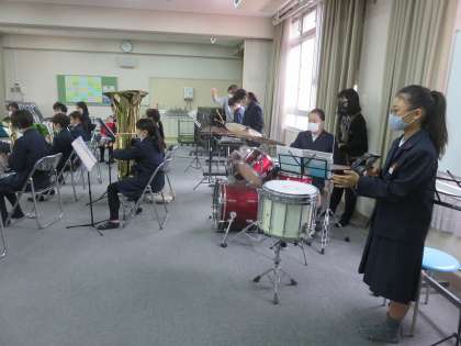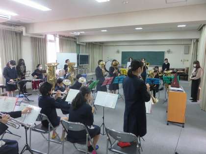 今日は、ブラスバンドクラブの演奏会を運動場で行います。