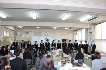 今日は、新しく日吉小に来られた教職員の方を紹介する着任式を行いました。
