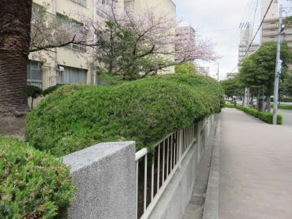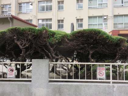 『学校の柵からはみ出ているカイズカイブキのオニメ(トゲが出ている部分)が、子どもの目に当たるかもしれない。危険があるのに、学校はなぜ放置しているのか・・』