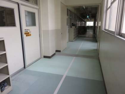 今日は、新校舎の1〜4階までの廊下をワックスがけしました。